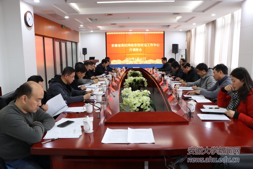 本网讯(新闻中心 乐和晴)1月15日上午,安徽省高校网络思想政治工作中心月调度会议在我校磬苑校区召开。省委教育工委副书记王佩刚、校党委副书记胡小松、纪委书记王忠出席会议。会议由王佩刚主持。