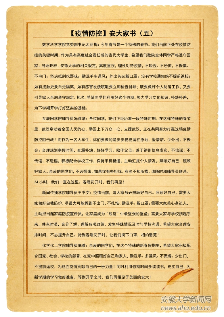 【疫情防控】安大家书(五)