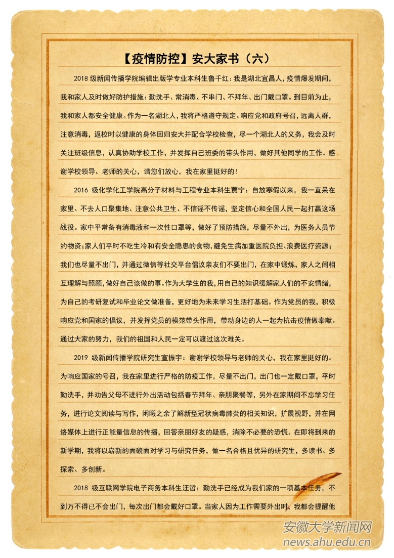 【疫情防控】安大家书(六)