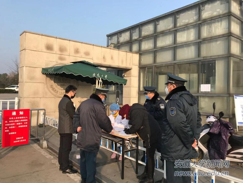 新春佳节,本该是阖家团圆的日子。但在学校里,有这样一群人,他们带着口罩,顶着簌簌寒风,守护师生健康。患有严重腰椎疾病的秦昀医生和刘剑波医生,二话没说都参与到值班值守当中。从1月30日开始,全院除两名病人、一名居家隔离外,全员在三个大门处上岗,为打赢疫战助力。入夜后,温度骤降,医护人员依旧带着炙热的情感,战斗在学校的第一线,为安大校园筑起第一道防线。