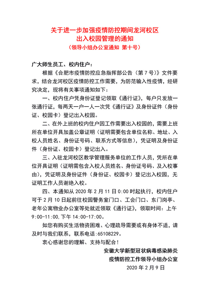 【疫情防控】关于进一步加强疫情防控期间龙河校区 出入校园管理的通知