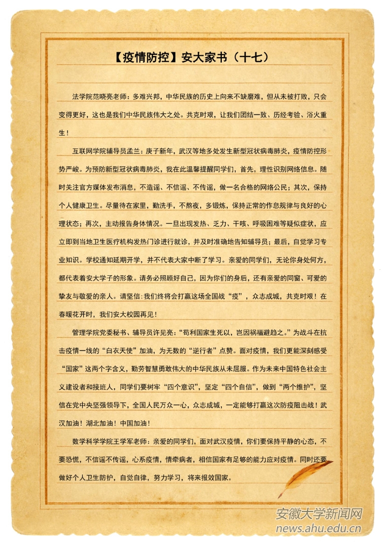 【疫情防控】安大家书(十七)
