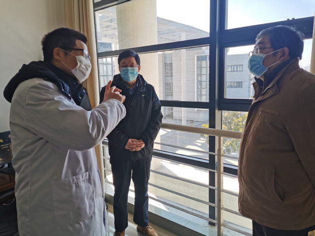 本网讯(新闻中心)2月18日上午,校纪委书记、安徽大学新冠肺炎疫情防控领导小组副组长王忠,副校长、安徽大学新冠肺炎疫情防控领导小组办公室主任周飞前往磬苑校区督查指导疫情防控工作,慰问奋战在疫情防控一线的工作人员。