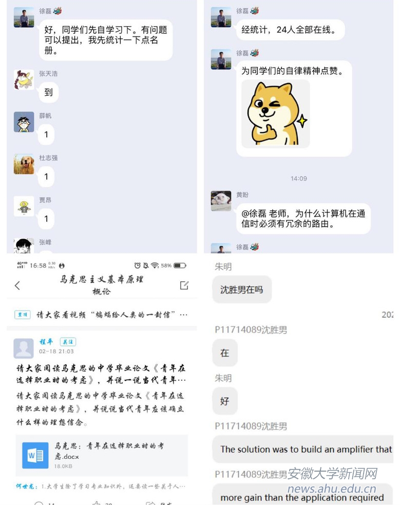 在开展线上教学的过程中,针对教学方式改变、无法直观了解同学的真实听课状态以及软件技术和网络稳定等多种问题,学院教师正在积极探讨解决,同时注重解决跟踪学生在群中提出的教学反馈意见,及时完善线上课堂的搭建和教学技术手段的运用,以期为同学带来更好的课程体验。