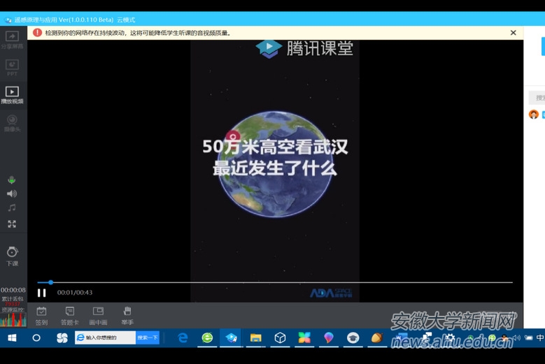 赵晋陵老师在《遥感原理与应用》课堂上结合当下的新型冠状病毒肺炎疫情,通过对比疫情发生前后武汉市主要场景的遥感卫星影像,让同学直观认识遥感技术的应用以及做好防控工作的重要性。