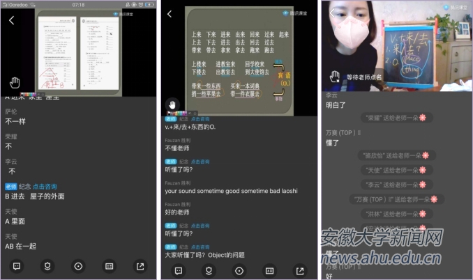 参加课程的国际学生们或在学校宿舍房间,或在万里之外的家中,借助电脑和网络加入到空中课堂。大家表示,在线上课的语音互动方面还有欠缺,但消除了线下上课时的紧张,反而能在更轻松的氛围中快乐学习,并且上课内容能够无限回放,细细消化,便于课后复习。