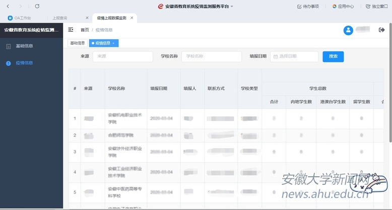 安徽省教育系统疫情监测服务平台截图
