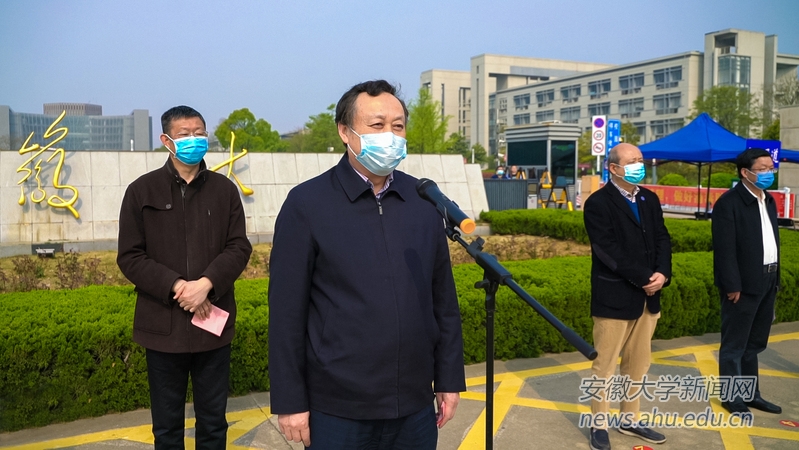 本网讯(新闻中心 徐红)4月10日上午,学校在磬苑校区开展新冠肺炎疫情防控应急演练。应急演练指挥长、校党委书记蔡敬民宣布安徽大学疫情防控应急演练正式开始,副指挥长、常务副校长王群京代表学校作动员讲话,副指挥长、校党委副书记胡小松,合肥市疾控中心经开区分站负责同志全程指导,副指挥长、党委常委、副校长周飞主持动员会。