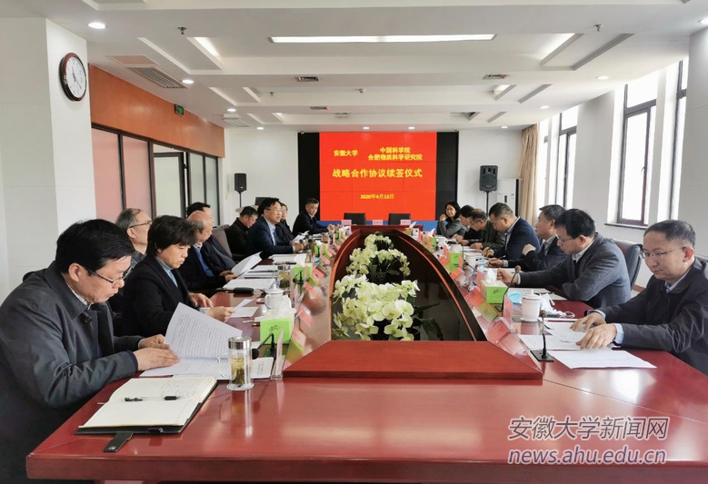 本网讯(新闻中心 朱雪融)4月13日,安徽大学与中国科学院合肥物质科学研究院战略合作协议续签仪式在磬苑校区办公楼举行。中科院合肥物质科学研究院院长刘建国,党委书记黄晨光,副院长吴海信、宋云涛、王俊峰、程艳,安徽大学党委书记蔡敬民,校长匡光力,常务副校长王群京,校党委副书记胡小松,校党委常委、副校长俞本立、薛照明、程雁雷,校纪委书记、监察专员王忠,校党委常委、副校长周飞,副校长钱家盛出席签约仪式。仪式由匡光力主持。刘建国、匡光力代表双方签署《安徽大学 中国科学院合肥物质科学研究院战略合作协议》。