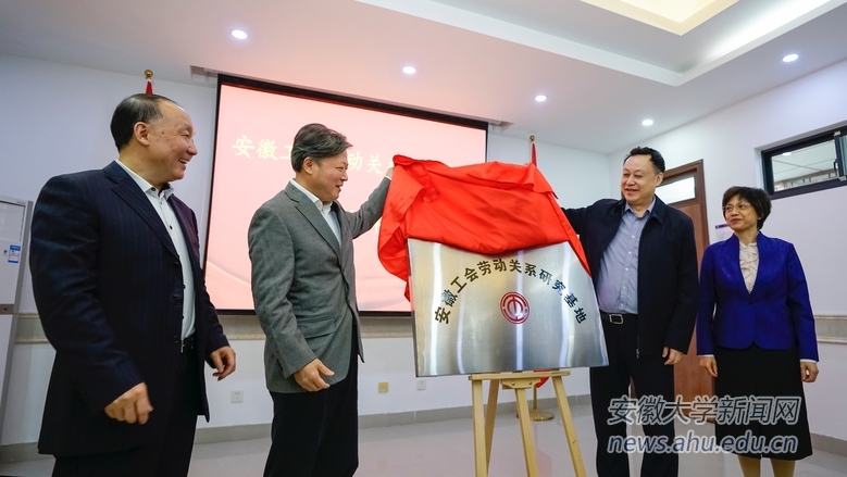 本网讯(新闻中心)4月28日上午,安徽工会劳动关系研究基地成立揭牌仪式在我校磬苑校区法学院举行。