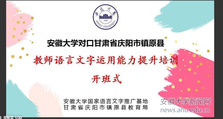 本网讯(通讯员 丁丽丽)根据《教育部语用司关于对52个未摘帽贫困县开展教师国家通用语言文字能力提升在线示范培训的通知》要求,安徽大学对口甘肃省镇原县教师语言文字运用能力为期三个月的线上培训于5月16日上午9:00正式开班。