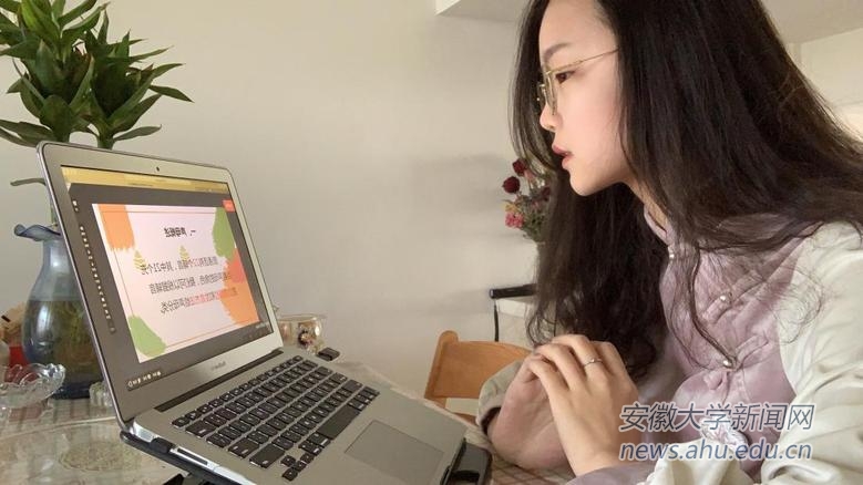 志愿者教师王璞儿在线上培训第一节课中对普通话基础知识展开教学,并积极与学员互动。课后志愿者团队及时组织小组会议,讨论此次课程的优点和不足,为之后的教学提出意见和建议。