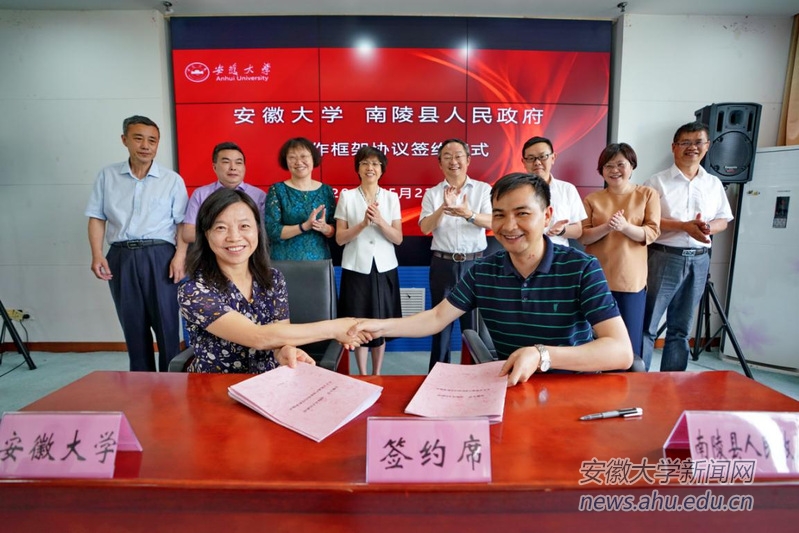 双方签署了《安徽大学南陵县人民政府关于文化遗产保护的合作框架协议》《关于共建“安徽大学南陵大工山实践教育基地”的合作协议》。