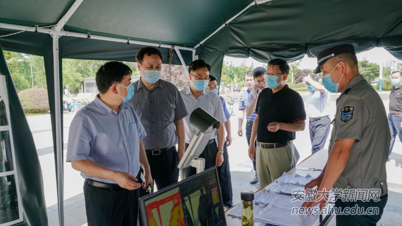 李和平一行实地考察了磬苑校区东门入校检查通道、学生返校隔离留观点、学生宿舍、食堂等处,并与工作人员亲切交谈,仔细询问疫情防控工作情况。