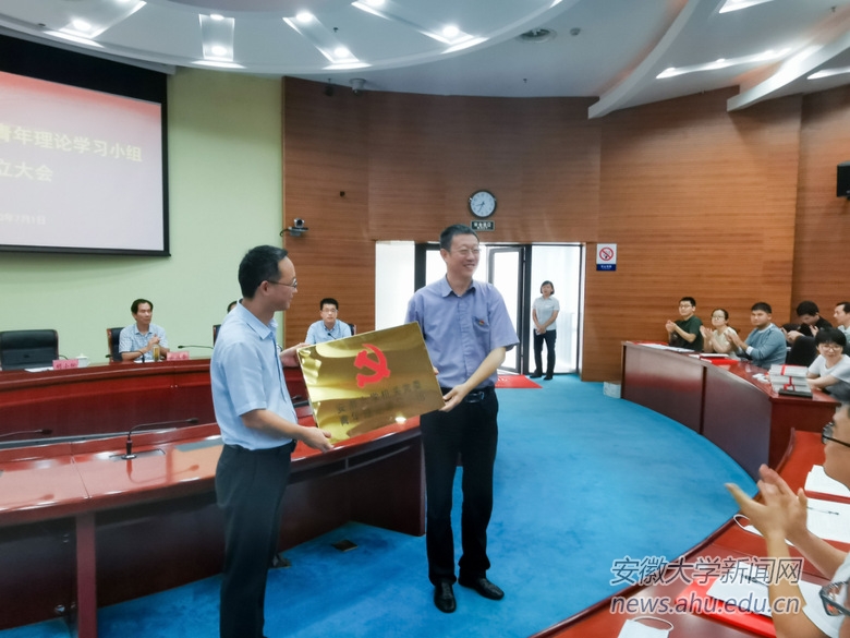 本网讯(新闻中心 周仲寅)7月1日上午,安徽大学机关青年理论学习小组成立大会在磬苑校区办公楼举行。校党委副书记胡小松出席会议,机关党委委员、机关纪委委员、机关青年理论学习小组成员参加会议。大会宣布成立安徽大学机关青年理论学习小组,胡小松为学习小组授牌并代表校党委向机关青年理论学习小组成立表示祝贺。