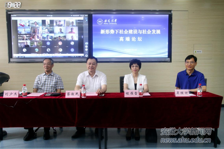 本网讯(通讯员 李庆)7月4日,“新形势下社会建设与社会发展高端论坛”在我校磬苑校区行知楼A408会议室开幕。本次会议采用线上线下相结合的形式,校党委书记蔡敬民出席线下开幕式并致开幕辞。开幕式由副校长程雁雷主持。