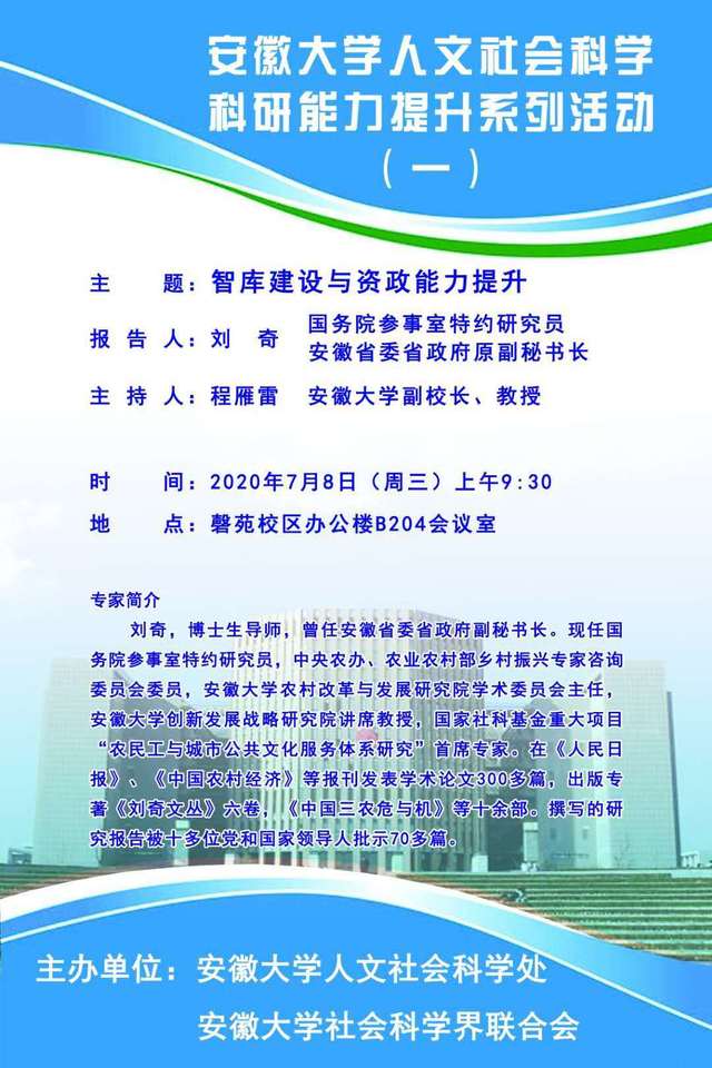 安徽大学人文社会科学科研能力提升系列活动(一)