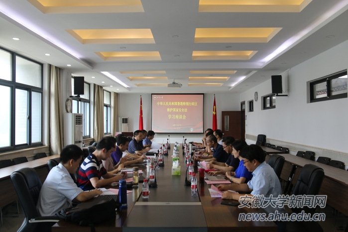 本网讯(新闻中心 蔡丽丽)7月8日上午,学校组织专家学者在社科A楼举行香港国安法学习座谈会,深入学习、宣传和贯彻《中华人民共和国香港特别行政区维护国家安全法》,积极推动法律有效实施,坚决维护国家安全和香港长治久安。安徽省法学会党组成员、秘书长余永东,安徽省高级人民法院刑事庭第三庭副庭长陈吉双,安徽省政法委法治处四级调研员尹顺航,安徽省委党校法学部教授杜敏,《江淮论坛》第一编辑室主任、副研究员吴楠出席座谈会,法学院部分教师代表参加了学习座谈。