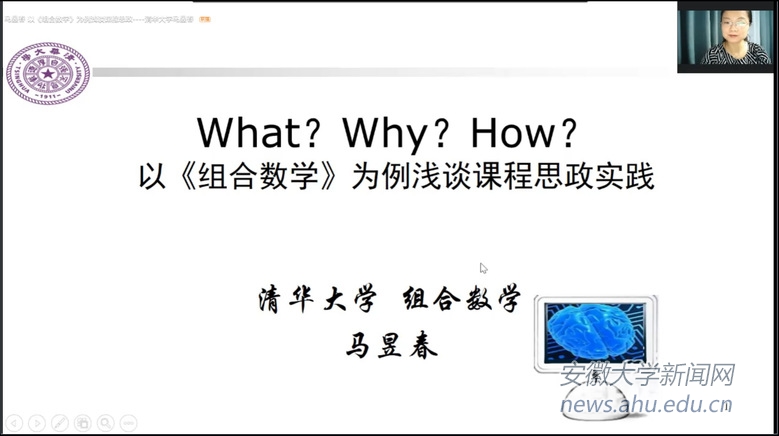 7月9日的第一场培训由清华大学马昱春副教授主讲。她以《组合数学》为例分享了自己在课程思政上的认识与做法,围绕“为什么讲(Why)、 讲什么(What)、怎么讲(How)”,精彩阐释了开展课程思政的原因和目的,如何在《组合数学》教学中将课程思政与国家立德树人、学校教改目标进行融合,达到“溶盐于汤”、育人“润物细无声”的效果等,同时结合我校教师提出的问题,详细解答了专业课教学设计中特别是理工科开展思想政治教育的常见误区和注意事项。