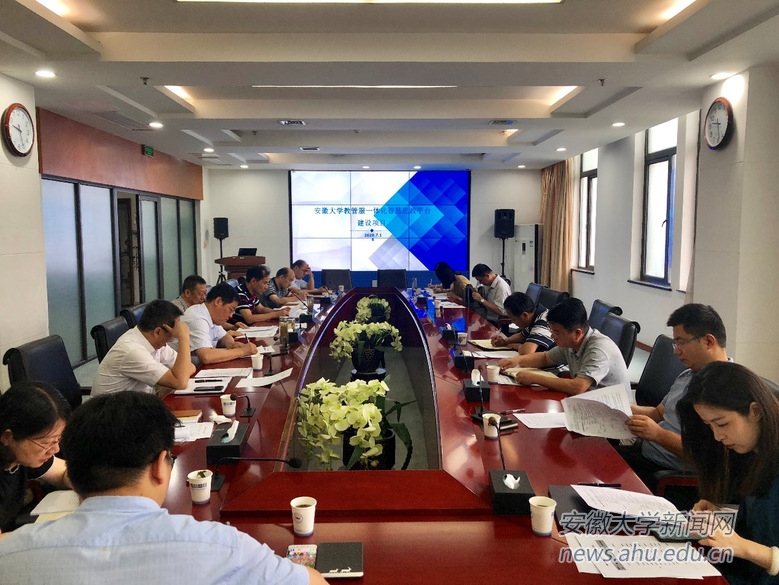 会上,校网络思政工作中心主任余照务通报了省教育厅关于加快推进安徽省高校教管服一体化智慧思政平台项目建设的通知。网络信息中心主任郑健解读了安徽大学教管服一体化智慧思政平台项目建设的整体方案、数据方案及相关要求。与会人员就项目建设细节展开了讨论。