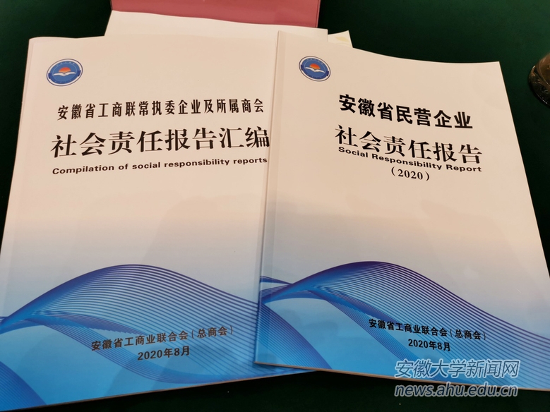 本网讯(通讯员 赵成名)8月13日,由我校商学院刘景东老师负责完成的《安徽省民营企业社会责任报告(2020)》在安徽省工商业联合会十一届六次常委会上发布。省政府副省长、省工商联主席王翠凤,省委统战部副部长、省工商联党组书记缪学刚,省工商联领导及省工商联十一届常委出席发布会。
