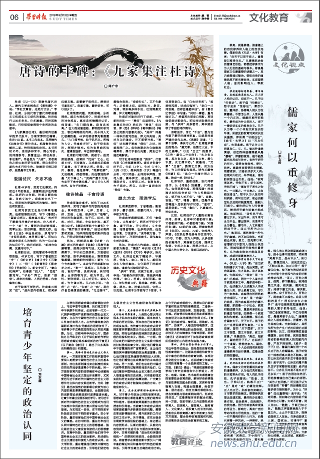 本网讯(出版社 吴泽宇)近日,我校文学院陈广忠教授校点的《九家集注杜诗》由安徽大学出版社出版。