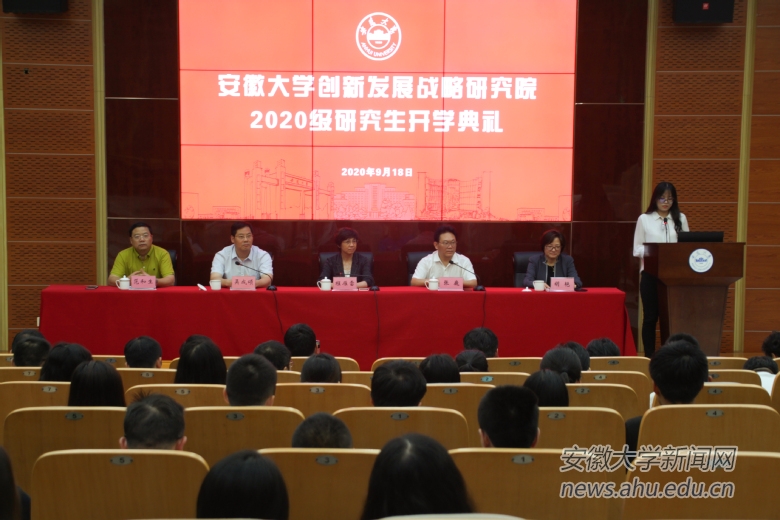 本网讯(通讯员 唐惠敏) 9月18日下午创新发展战略研究院在安徽大学磬苑校区文典阁报告厅举办2020级研究生开学典礼。校党委常委、副校长兼创新发展战略研究院院长程雁雷出席仪式。开学典礼由创新发展战略研究院直属党支部书记、副院长张巍主持。