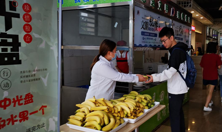 此前,学校还举办了“厉行节约、反对浪费“签名活动等,多个食堂开展了“光盘换水果”活动。