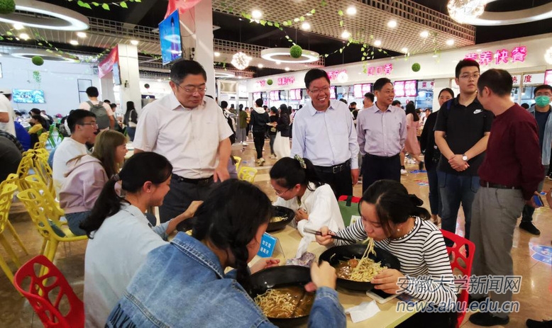 在榴园和桂园食堂,校领导一行检查了食堂“厉行节约、反对浪费”的氛围营造、“光盘行动”开展情况,并与正在就餐的同学就食堂餐饮质量、菜品种类等进行了交流。