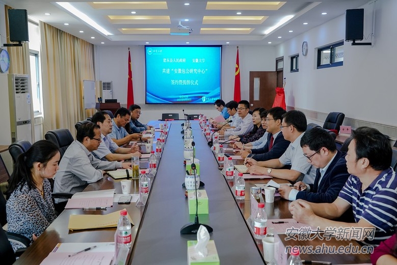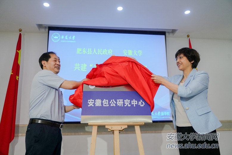 本网讯(法学院)9月28日上午,肥东县人民政府安徽大学共建“安徽包公研究中心”签约暨揭牌仪式在我校磬苑校区举行。校党委常委、副校长程雁雷,肥东县委常委、宣传部部长许高彬共同为中心揭牌,许高彬与校党委常委、宣传部部长郭志远代表双方签署共建协议。