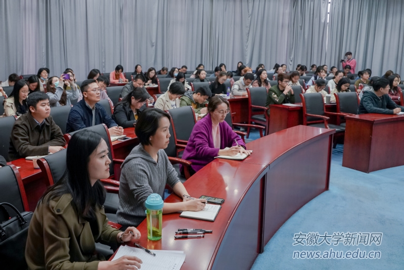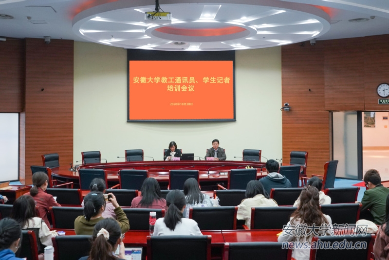 本网讯(融媒体中心 王洋)10月28日下午,校党委宣传部在磬苑校区办公楼召开教工通讯员、学生记者培训会议。《安徽日报》文化新闻中心主任记者陈婉婉应邀授课,会议由校党委常委、宣传部部长郭志远主持。