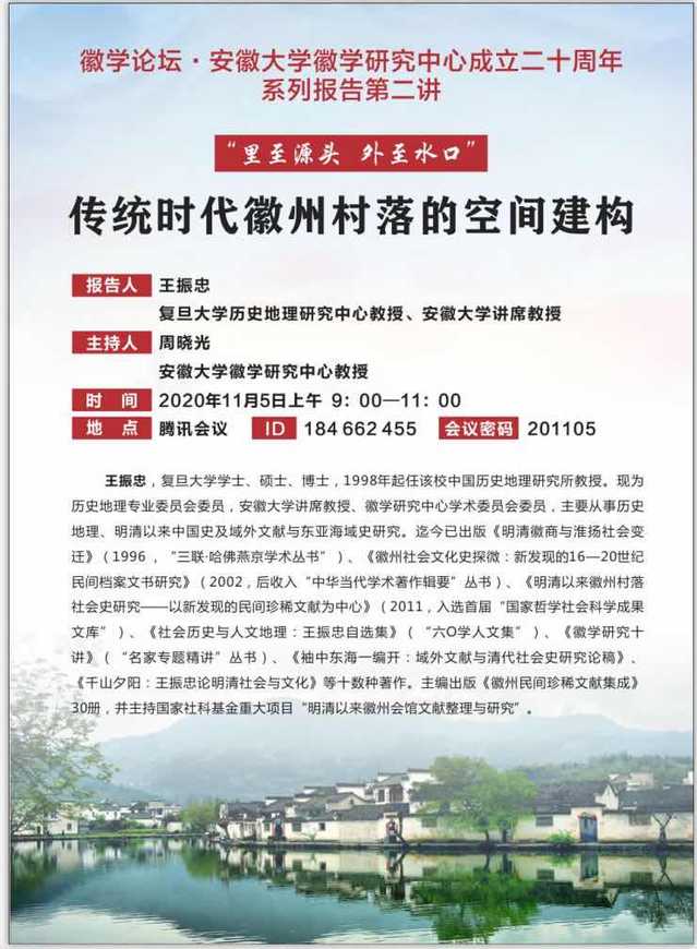 徽学论坛·安徽大学徽学研究中心成立二十周年系列报告第二讲:“里至源头 外至水口”——传统时代徽州村落的空间建构