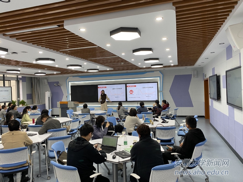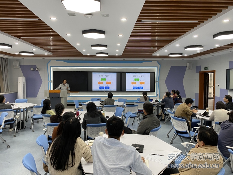 本网讯(党校\教师发展中心)10月29日下午,学校在磬苑校区行知楼举办了安徽大学“金课”建设暨智慧教学工作坊。工作坊培训内容由“线上‘金课’和混合式‘金课’建设”、“线上与线下混合式课程整体设计”两个专题构成。