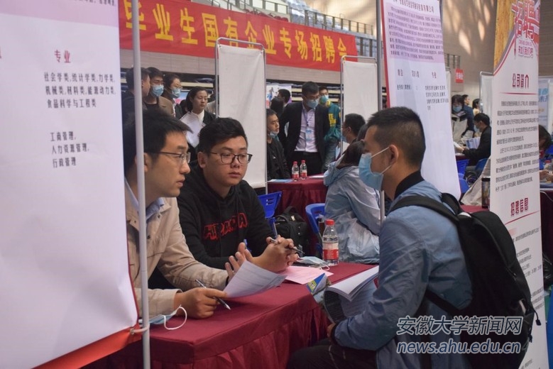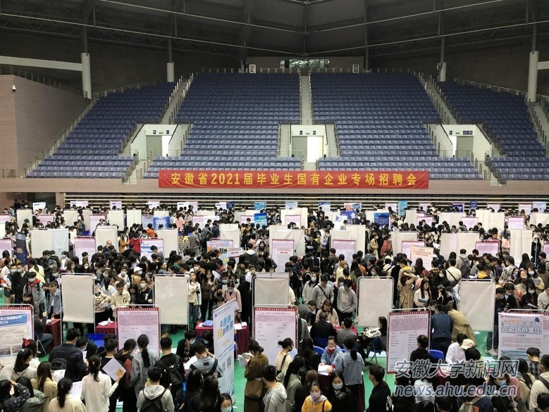 本网讯(通讯员 徐剑)11月7日上午,安徽省2021届毕业生国有企业专场招聘会在我校磬苑校区体育馆举行。此次活动由安徽省人民政府国有资产监督管理委员会、安徽省教育厅主办,安徽大学承办。