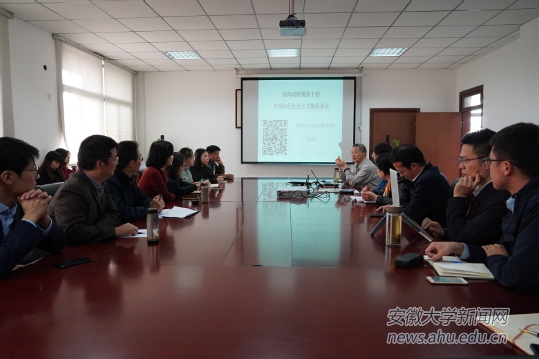 本网讯(融媒体中心 陈甜)11月10日下午,南京审计大学公共管理学院院长金太军在我校磬苑校区社科楼B502作了题为“中国特色制度体系的结构功能分析”的讲座。讲座由社会与政治学院院长吴理财主持。