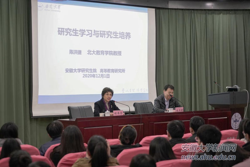 本网讯(融媒体中心)12月1日上午,北京大学中国博士教育研究中心主任陈洪捷教授和北京大学教育学院博士研究生导师郭建如教授在我校龙河校区逸夫图书馆第二会议厅举行学术讲座。校党委常委、副校长程雁雷主持讲座。