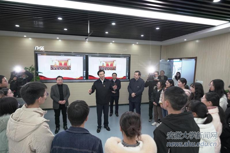 本网讯(融媒体中心)12月2日,省委常委、省委宣传部部长陶明伦到安徽大学,学习宣讲习近平总书记《论党的宣传思想工作》,实地调研安徽省高校网络思想政治工作中心,与师生代表互动交流。