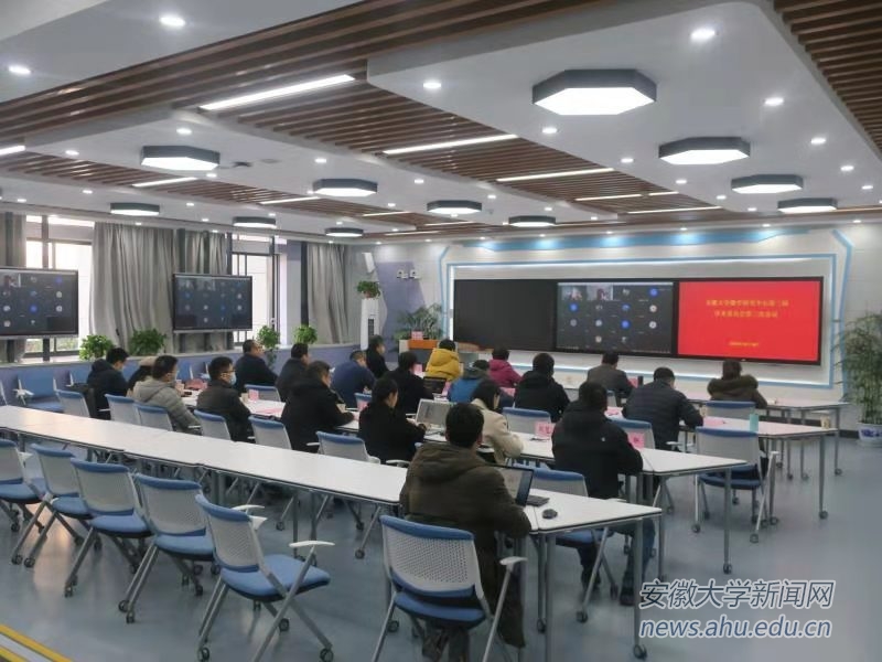 本网讯(徽学研究中心 郭睿君)12月16日下午,安徽大学徽学研究中心第三届学术委员会第三次全体会议以线上线下相结合的形式在我校召开。安徽大学校党委常委、副校长程雁雷,安徽省教育厅科研处一级主任科员李灿出席会议并致辞,全体学术委员会委员、校职能部门领导及中心人员参加会议,会议由中山大学党委书记、中心学术委员会主任陈春声主持。