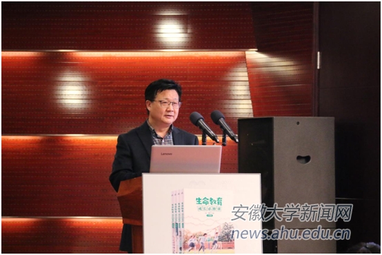 由肖川、曹专主编,北京生命教育科普促进会(北京师范大学生命教育团队)联手全国近200所学校的优秀校长和教师共同编写,安徽大学出版社出版的新书《生命教育——成长必修课》在开幕式上正式发布,肖川教授、陈来社长共同为新书揭幕,并向优秀编委代表赠书。