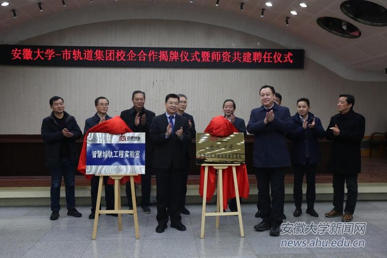 本网讯(互联网学院)2020年12月29日,我校与合肥市轨道交通集团校企合作揭牌仪式暨师资共建聘任仪式在合肥市轨道交通集团举行。校党委书记蔡敬民,副校长薛照明,合肥市轨道交通集团党委书记、董事长陈华,党委副书记、董事、总经理罗斌出席仪式。市轨道交通集团党委副书记、董事、工会主席储继红主持仪式。