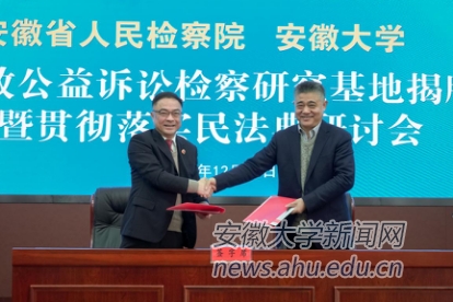 钱家盛说,安徽省人民检察院安徽大学共建“安徽民事、行政、公益诉讼检察研究基地”的成立,是打破高校和社会体制壁垒,将知识教学和实践教学相结合,将优质实践资源引入高校,深化检校合作的一次新探索、新尝试。希望双方要真正依托研究基地深入开展民事、行政、公益诉讼检察领域重大理论和实践问题的研究,不断推出高质量的理论研究成果,不断深化人员交流,真正把研究基地打造成集教育培训、人才培养、理论研究综合性平台。