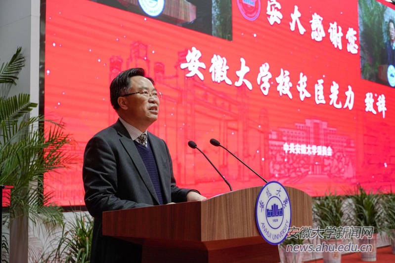 匡光力代表学校向一直以来为学校改革发展事业奉献全部心血的2020年荣休教师们表示感谢,他指出,教师是立教之本、兴教之源。安徽大学取得的每一项成就、实现的每一步跨越,都离不开大家在各个岗位上的兢兢业业、无私奉献。学校会感恩、铭记各位老师,希望各位老师在荣休之后继续关心关注学校发展,为学校“双一流”建设贡献更多的力量。
