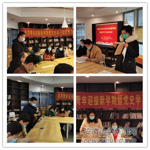 本网讯(机关青年理论学习小组 郑超)为认真贯彻落实习近平总书记在党史学习教育动员大会上的重要指示精神,进一步激发机关青年教职工的向心力、凝聚力、战斗力,更好地为学校“双一流”建设贡献青春和力量。2月26日中午,由机关党委主办、机关青年理论学习小组承办的机关青年迎接新学期暨党史学习知识竞答活动在磬苑校区办公楼机关党委党员活动室成功举办。