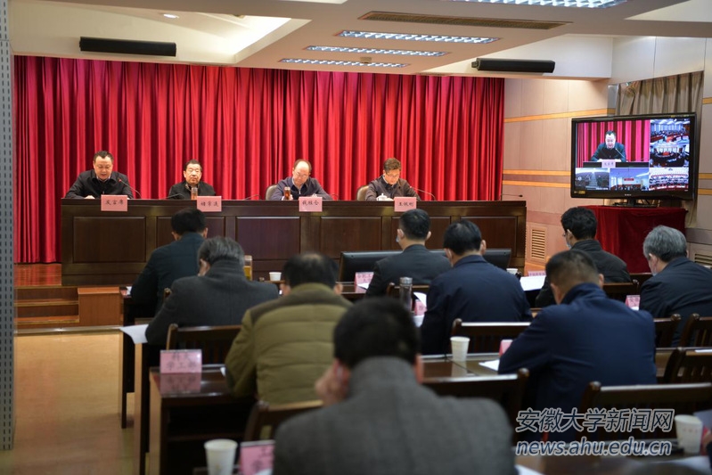 本网讯 3月3日,省委教育工委召开2021年安徽省高校思想政治教育重点工作推进会。省委教育工委书记钱桂仑出席会议并讲话,省委教育工委副书记王佩刚主持会议,省委教育工委委员、省教育厅副厅长储常连出席会议。校党委书记蔡敬民在教育厅主会场参加会议并做交流发言,校党委副书记胡小松在安徽大学分会场参加会议。