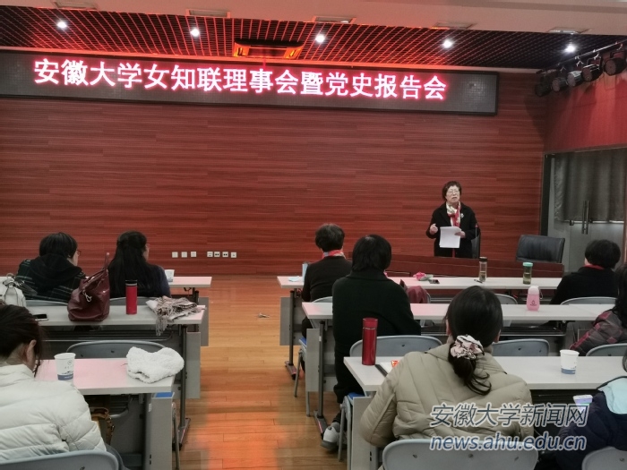 本网讯 3月8日下午,为庆祝第98个“三八国际妇女节”,我校女知联及工会女工部在教工活动中心联合举办安徽大学女知联理事会暨党史报告会。活动由女知联副会长夏福英主持。
