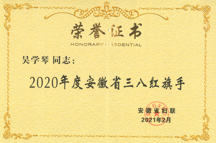 本网讯(党委教师工作部 储汉民)日前,安徽省妇女联合会印发《关于2020年度安徽省三八红旗手、安徽省三八红旗集体的通报》,我校马克思主义学院吴学琴教授荣获“2020年度安徽省三八红旗手”称号。