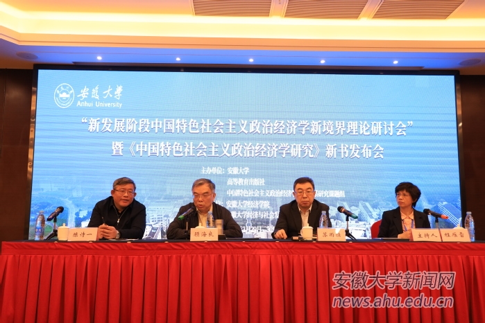 本网讯(融媒体中心 王炳贺)3月30日上午,新发展阶段中国特色社会主义政治经济学新境界理论研讨会暨《中国特色社会主义政治经济学研究》新书发布会,在合肥隆重举办。安徽大学党委副书记、常务副校长陈诗一出席会议并讲话。安徽大学党委常委、副校长程雁雷主持会议。