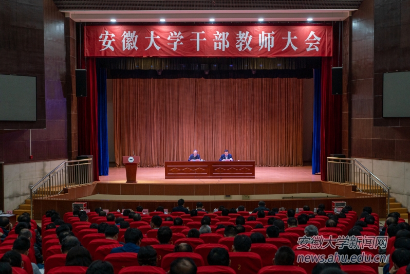 本网讯(融媒体中心 周仲寅 范华飞) 4月23日上午,我校在磬苑校区艺术楼小剧场召开干部教师大会。省委综合考核组第十三组组长、省委教育工委副书记、省教育厅厅长赵振华作动员讲话,校党委书记蔡敬民代表学校领导班子作工作报告。会议对学校领导班子进行民主测评和民主评议。