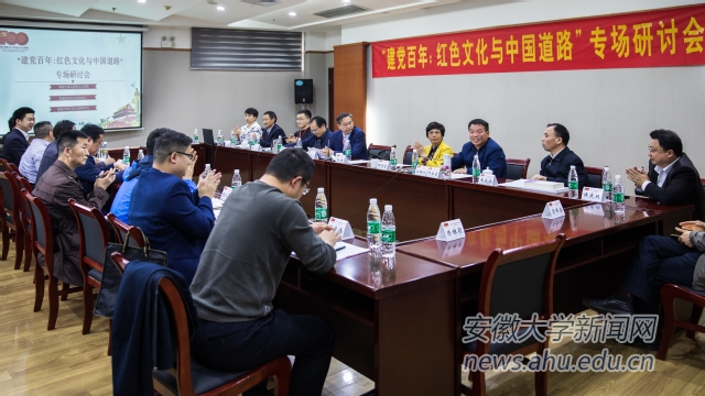 研讨会最后,张崇旺做了简短总结,指出此次研讨会在形式上有较大创新,由安徽大学马克思主义学院、中国社会科学院马研院习近平新时代中国特色社会主义思想研究部、安徽红色文化研究中心、安徽大学红色文化研究中心、安徽大学社会科学界联合会共同主办。同时,此次专场研讨会嘉宾来自五湖四海,不同地区不同单位的老中青学者汇集一堂,共同研讨红色文化与中国道路问题,共同纪念百年中国共产党的丰功伟绩。
