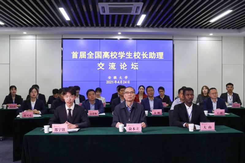 本网讯(融媒体中心)4月24日,由安徽大学发起并主办的首届全国高校学生校长助理交流论坛在磬苑校区理工楼B303会议室举行,来自全国31所高校的264名学生校长助理“云聚一堂”。本届论坛主题为“沟通·交流·成长”。校党委常委、副校长俞本立出席开幕式并致辞。